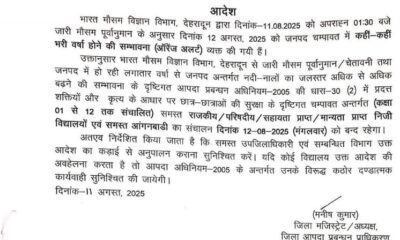 August 11, 2025लगातार हो भारी बारिश एवं दिनांक 12 अगस्त 2025 को भी जनपद चंपावत सहित राज्य के...